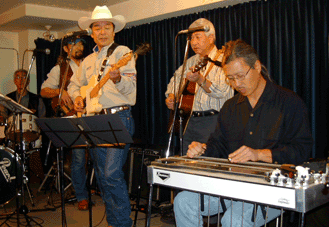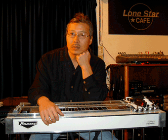 よりスチール・ギターの基礎を教わる