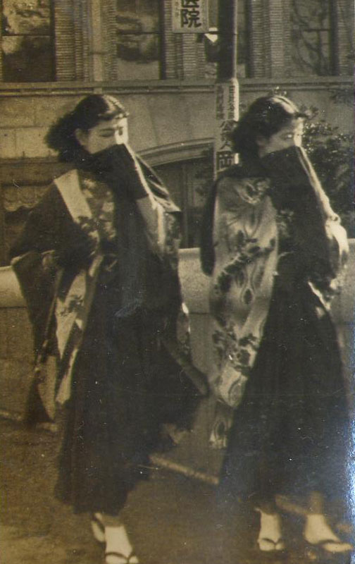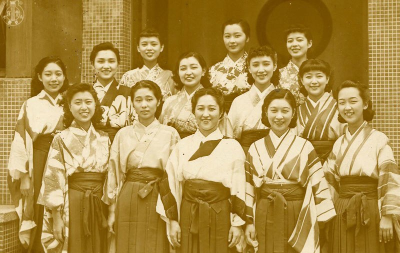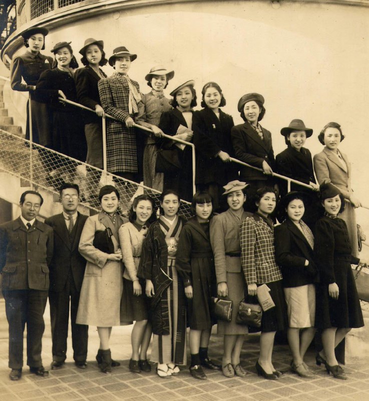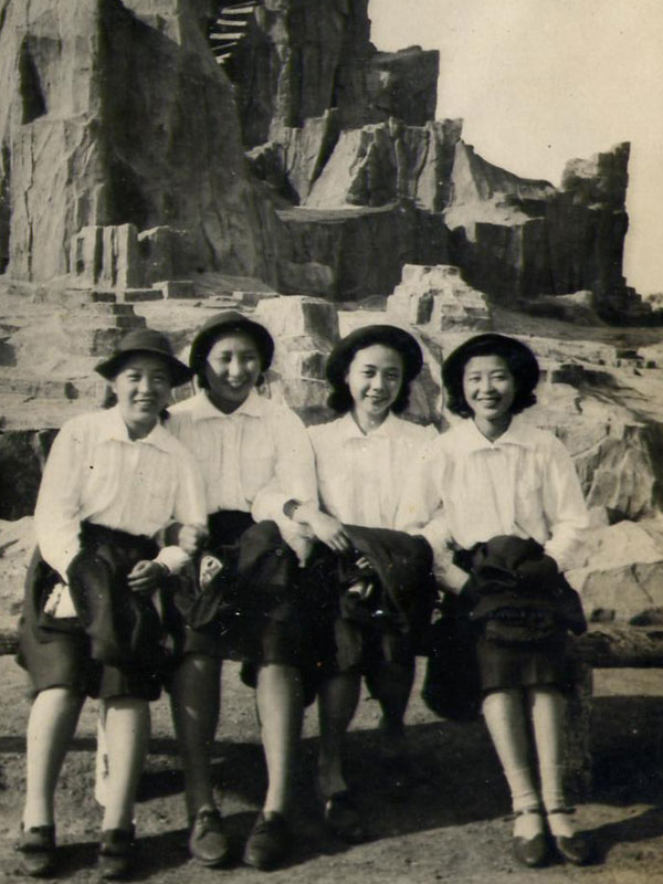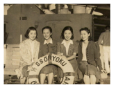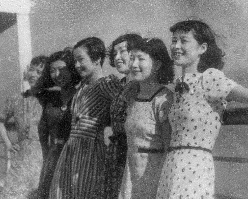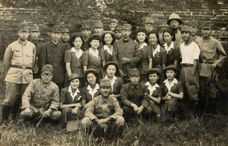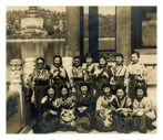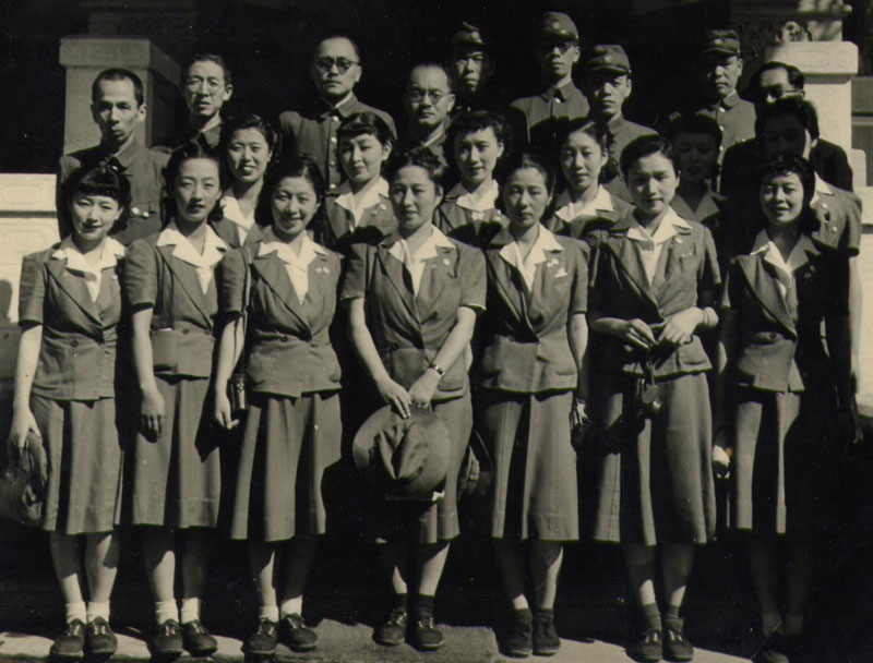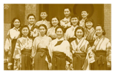 | 宝塚北支慰問団 後列左端は団長の天津乙女 母は一人おいたサングラス姿 |