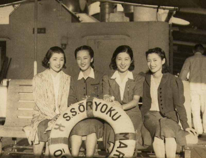 大阪商船の鴨緑丸 神戸ー大連航路の船上にて 右端 |