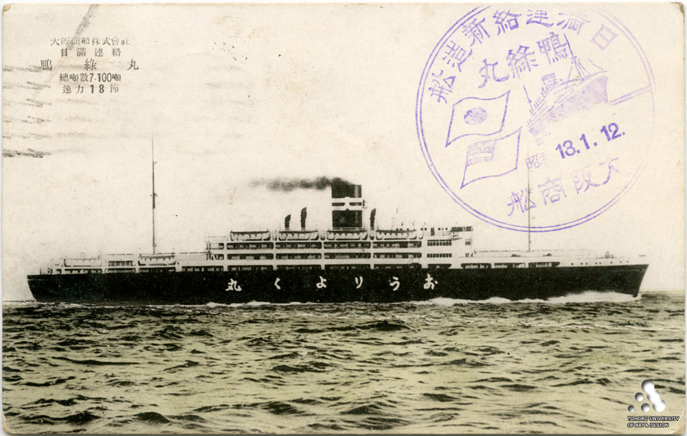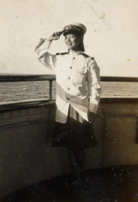 大阪商船の鴨緑丸 神戸ー大連航路の船上にて 士官の服を借用? |