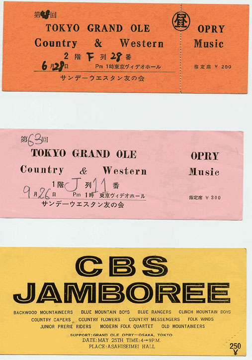 後列左より萩原、文村、尾崎、北島、村田、小島、前列左より久下、竹中(ハダカ)、岩田 その当時のチケット類
